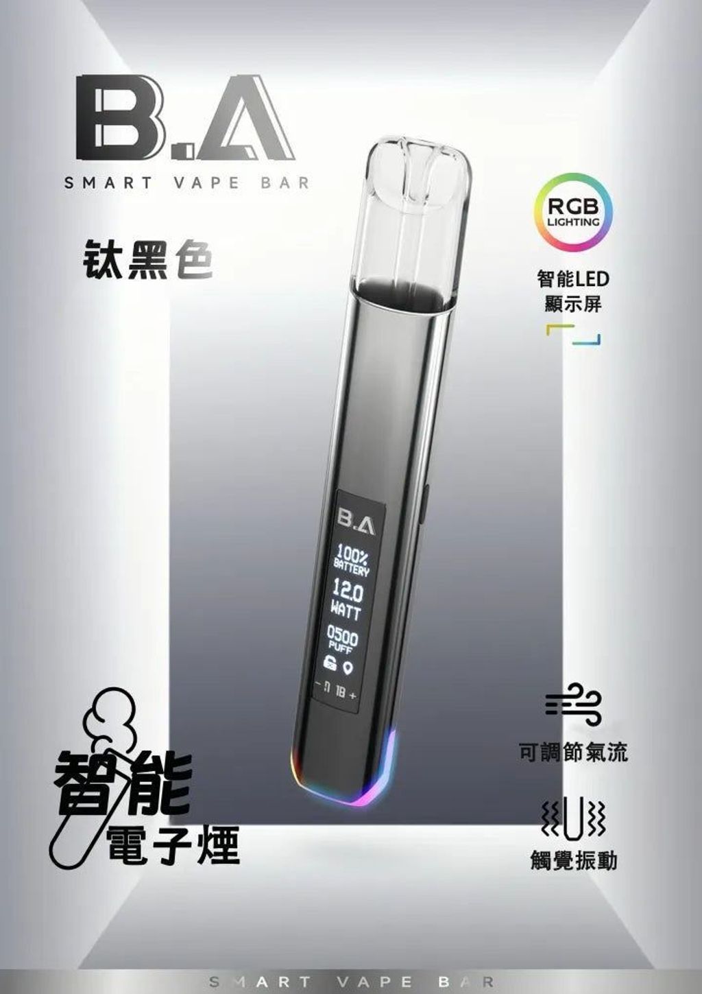 全新登場的B.A一代可調式發光主機,以LED觸控顯示屏為核心亮點,融合時尚設計、智能溫控與持久續航三大優勢,成為台灣電子煙市場的熱門選擇!採用高級漆面工藝,呈現獨特光澤與質感,不僅是實用的vaping工具,更是展現個人品味的時尚配件。智能溫控技術確保每一口輸出穩定,600mAh電池帶來長效續航,讓你隨時享受順暢安心的體驗。