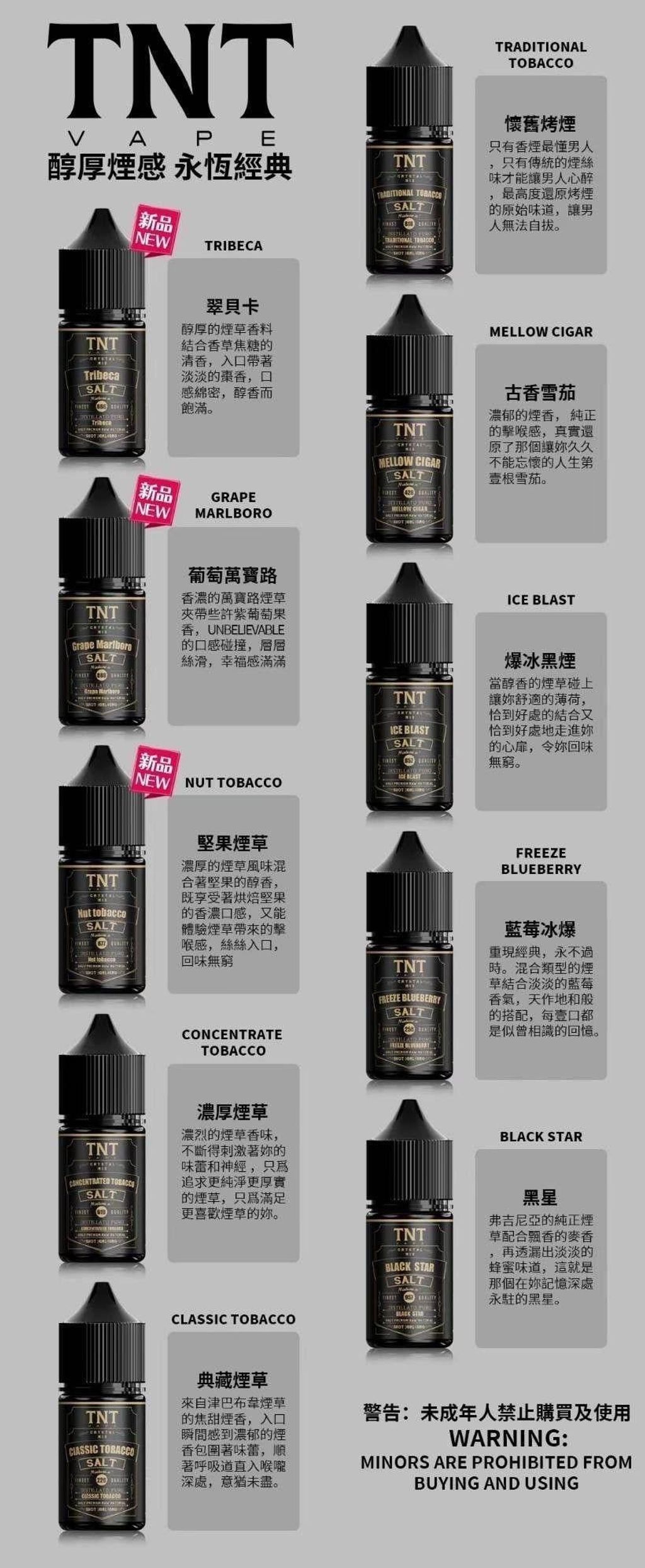 TNT進口小煙油憑藉優異品質與口碑,已成為眾多煙油愛好者的回購首選。不論您是新手還是資深玩家,都能在這裡找到滿意的選擇。現在就聯繫我們,開啟您的美味煙油之旅吧!